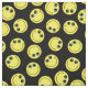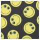 The yellow emoji faces on this fabric have blue eyes. Design has a black background which may be customized to any colour you wish.
