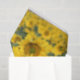 Tissue paper with a beautiful photograph of a field of yellow sunflowers.