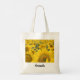 Tote bag with a beautiful photograph of a field of yellow sunflowers.