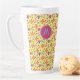 Enjoy your morning cup of coffee with this customized Mexican-inspired floral patterned latte mug. The bright colours and geometric folk art set against the bright yellow mug, are sure to brighten your day. Personalize this mug with your initial in your choice of font and colour.