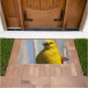 This doormat has a Yellow finch pictured on it.