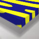 A minimalist modern art design of details of a fingerprint in yellow on a dark blue background.