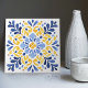Add a splash of Mediterranean sunshine to your home with our Golden Fleur-de-Lis Azulejo Tile Print. This exquisite piece captures the vibrant beauty and intricate designs of the iconic Portuguese azulejos. The bold golden yellow and rich royal blue hues are accented by delicate touches of white and orange, creating a warm and inviting ambiance. While it maintains the look of traditional tilework, this print is crafted without the physical relief or bevel for ease of installation. It's a stunning way to bring historic elegance to any room, functioning beautifully as a backsplash, a statement piece, or a unique coaster for your living space.