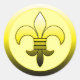 Round stickers in two sizes, with a large fleur de lis design. This one is yellow, and you can customize the background colour to anything you like. The fleur-de-lis is a stylized lily (in French, fleur means flower, and lis means lily) or iris used as a decorative design or symbol. It's a symbol of all things France, and Quebec, and New Orleans and many other places.