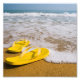 Photograph of ocean tide lapping at a pair of forgotten yellow flip flops on the beach