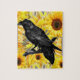 yellow floral black crow & sunflowers art jigsaw puzzle