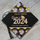 Yellow Floral Black Gold Class 2024 Graduation Cap Topper