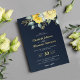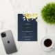 This contemporary floral wedding invitation features a classy and elegant bouquet of yellow watercolor roses, complemented with delicate greenery and accented with shiny real foil golden leaves over a navy blue background. Easily add the Bride and Groom names and the wedding date in gold foil, and all the other details in elegant white fonts.
