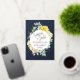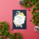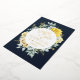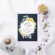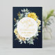 This modern floral wedding Save The Date card features a stylish and elegant bouquet of yellow watercolor roses, complemented with delicate greenery and accented with real foil golden leaves over a classy navy blue background. Easily add your wedding details in true golden foil fonts.