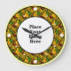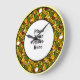 Yellow Floral Frame round photo frame behind the hour marks, Place your photo here custom wall clock, your photo will appear behind the round photo frame for a truly professional look - white gold dots for hour marks - 12,3,6 and 9 being larger dots, in a diamond shaped pattern looks great on round or square clocks