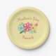 These easy to customize paper plates features a yellow background with sample text" "Mother's Day Brunch". However you can use these plates for any event that you can imagine. The background is light yellow with a pink blue and yellow floral display in the centre. Customize using your own text, images, and clipart. Place your order today!
