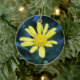 Ornament featuring delicate yellow flower. Available in a range of shapes and fully customizable.