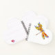 Artistically painted, floral dragonfly in contrasting orange and purple with yellow, bright, blooming California poppy and blue wildflowers on white background.