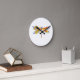 Artistically painted, floral dragonfly in contrasting orange and purple with yellow, bright, blooming California poppy and blue wildflowers on white background.