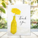 The pretty Yellow Flower in Vase Wedding Thank You Note Card can be personalized with your own message of gratitude and appreciation for gifts received after your summer bridal shower, engagement party or marriage reception. This elegant custom flowery thank you note features a cheerful floral photograph of a yellow chrysanthemum flower blossom on the stem in an amber coloured glass vase with white satin.
