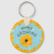 Yellow Flower Rustic Robin Egg Blue Always Growing Keychain