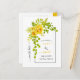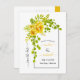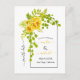 Yellow flowers and arch fall wedding Save the Date postcard. This lovely wedding design features an arch frame with yellow cactus flowers and green leaves on the upper left corner. The names are in script typography.