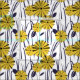 Seamless retro style illustration with yellow flowers and blue leaves on white background