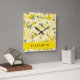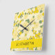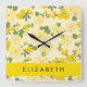 Yellow Flowers, Pattern Of Flowers, Your Name Square Wall Clock