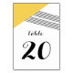 Modern and trendy Geometric Stripe Wedding Table Number Card with a yellow triangle and thinly striped accent. This simple yet elegant table card is set up to be easily customized with your wedding information. Find more customization options by clicking Customize It.