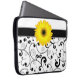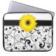 Yellow Gerbera Daisy on Black & White Scroll Laptop Sleeve