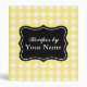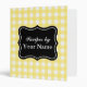 Yellow Gingham check recipe binder | personalized cook book. Custom kitchen cookbook with personalizable name, table cloth pattern print and elegant label. Cute cooking gift idea for men and women; ie mom, aunt, grandma, wife, sister, daughter, friend, coworker, colleague, chef etc.