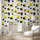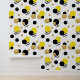 This fun wallpaper features polka dots in yellow, gold, black and stripes. The perfect accent addition to your home decor.