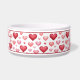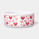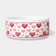 Destei's original cartoon illustration of a cute yellow coat colour Golden Retriever breed dog's head close-up with a pattern of hearts in red and pink colour scheme. There is also a personalizable text area for a name or other custom text such as "Water" or "Food".