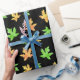 Yellow Green Black Watercolor Maple Leaf Pattern Wrapping Paper