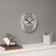 Colorful geometric shapes pattern, custom made artwork in prominent shades of yellow, green, blue, purple and with additional shades of burgundy, silver, gray, pink, gold. Elegant trendy digital art design.