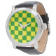 Yellow and Green Check Chequered Geometric Squares Pattern Design