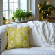 Yellow Green Victorian Retro Floral Damask Throw Pillow