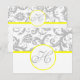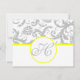 Yellow & Grey Victorian Damask Monogram RSVP Reception Cards. Make a statement on your big day with our Grey Victorian Damask with Yellow Trim Monogram RSVP Reception Cards! Add a touch of sophistication to your wedding with these beautifully designed cards that feature a classic Victorian Damask pattern in grey, accented with a bright pop of yellow trim. Make your RSVP cards truly special with a personalized monogram that showcases your unique style. Add that extra touch of elegance to your wedding. #WeddingElegance #StylishInvites #PersonalizedMonogram.