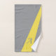 Trendy abstract illuminating yellow and ultimate grey stylish geometric grey colour block bath towel set personalized with your monogram and name.