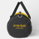 Sleek and customizable gym duffel bag design with minimalist text reading "Gym Bag" and personalized name option. The bag features a stylish combination of yellow and dark grey, making it the perfect gift for a friend who appreciates personalized items.