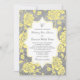 This stylish and modern monogrammed yellow, grey, and white vintage floral damask wedding invitation has large yellow textured looking peony or rose type flowers on a grungy grey damask background. Add your own monogram or logo. There is a text box on the back to add any extra text you may want, or you can remove the back white frame area image and text by using the "clear" feature in the customization section. It would be perfect for a yellow and grey themed wedding, or for a vintage or Victorian style wedding. It would also be very nice for a wedding anniversary invitation too. ***PLEASE NOTE there is no raised elements on this invitation. Everything is printed flat. The text and paper is all customizable. ***PLEASE NOTE that if you change the font or size of the font, it may alter how your invitation prints. It will print the way you see it on your monitor, so if you have alignment issues, or sizing problems, please contact me for help. I will not see your invitation once you order it, and Zazzle will NOT edit anything (typos, alignment, etc.). If you require assistance or would like any other matching items, please email your request to niteowlstudio@gmail.com.