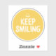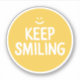 A cute and colourful motivational happiness sticker that says Keep Smiling in yellow and white.