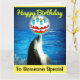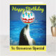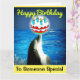 Yellow Happy Birthday Dolphin Art Card. Cute dolphin and cake card for a whimsical and fun look!