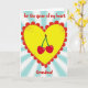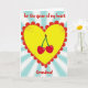 This greeting card shows a large yellow heart in the center, outlined with a scalloped red edge that makes it feel sweet and special. Inside the top curve of the heart sit two shiny red cherries with a thin green stem, like a small symbol of closeness and affection. The heart has tiny speckled dots across it, giving it a lightly textured look instead of looking flat. Behind everything is a sky-blue background with soft rays spreading upward from the bottom, drawing your eyes toward the heart. At the top, the words “For the queen of my heart” appear in rounded red letters, and “Grandma!” is written below it in the same red, standing out clearly. The bright colors and simple shapes make the message easy to understand at a glance, and it feels like a warm way to honor someone who means a lot. It’s a caring choice for telling Grandma she’s loved and appreciated, whether from a grandchild or the whole family 🥰❤️. Wishing you a lovely time sharing Valentine’s Day feelings with someone you love.