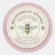 Label your own honey, candles, beeswax and more with this vintage black and yellow honeybee sticker with rose border. Personalize with your apiary business name at the top and add in your location or address below. You can edit the descriptive text to match your product or keep it general to match with anything your bees might create. Two additional vintage bees act as bullet points in this design.