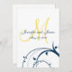 Use this stylish design to invite your guests to your yellow and navy blue wedding. Perfect for spring weddings or summer weddings. Yellow monogram, initial with B]blue swirls wedding invitation. Elke Clarke© for MonogramGallery at Zazzle.