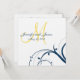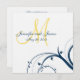 Yellow Initial, Blue Swirls Wedding Invitation
