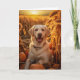 Embrace the rustic charm of Thanksgiving with our stunning card showcasing a Yellow Labrador Retriever in a harvest field as the sun sets in the background. Share the warmth and beauty of the holiday with your loved ones through this exquisite card.
