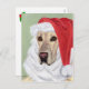 Beautiful Yellow Labrador Retriever Christmas Postcard. Whimsical and cute Labrador Retriever Painting painted by Naomi Ochiai. Do you like a Yellow Lab Santa? Light mint green background. You can customize text for personalized Christmas Cards!