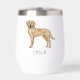 Illustration originale de Destei d'un chien de race Labrador Retriever de couleur jaune. Le chien a une belle expression de visage qui est encadrée par ses grandes oreilles disquettes. Le chien dessine le chien du côté pendant qu'il se tient debout. La tête du chien est tournée vers le spectateur de l'image. Il y a aussi une zone de texte personnalisable pour un nom ou un autre texte personnalisé.