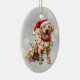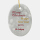 On the front of this Holiday ornament is an image of a yellow Labrador Retriever dog wearing a Santa hat and wrapped in coloured Christmas lights. The image is set against a festive silver bokeh background. The back of the ornament has the same background with custom text that currently says "Merry Christmas Happy New Year", the date and your signature. Cute for anyone, but especially for Lab fans.