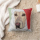 Beautiful Yellow Labrador Retriever pillow for Christmas. A Yellow Lab is wearing Santa Hat. Nice gift for dog lovers who love Labrador Retriever. Yellow Labrador Portrait painted by Naomi Ochiai.