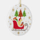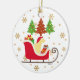 Yellow Labrador Silhouette Christmas Sleigh Ceramic Ornament for Labrador Fans. Yellow Labrador sitting on Santa's Sleigh in the forest. Created by Naomi Ochiai.