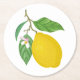 Yellow Lemon with Green Leaves and White Flower Round Paper Coaster