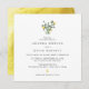 Simple and elegant watercolor lemons citrus greenery in a jar arrangement wedding invitation with classic font below.